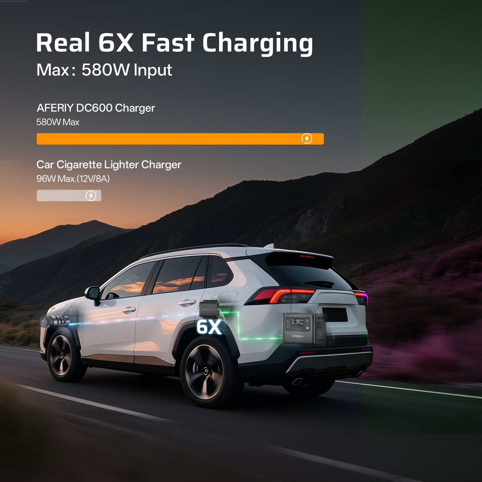 The AFERIY DC600 Charger delivers 6× faster charging efficiency with a 580W high-speed output, dramatically reducing charging time and ensuring quick, efficient power replenishment for your portable power station.